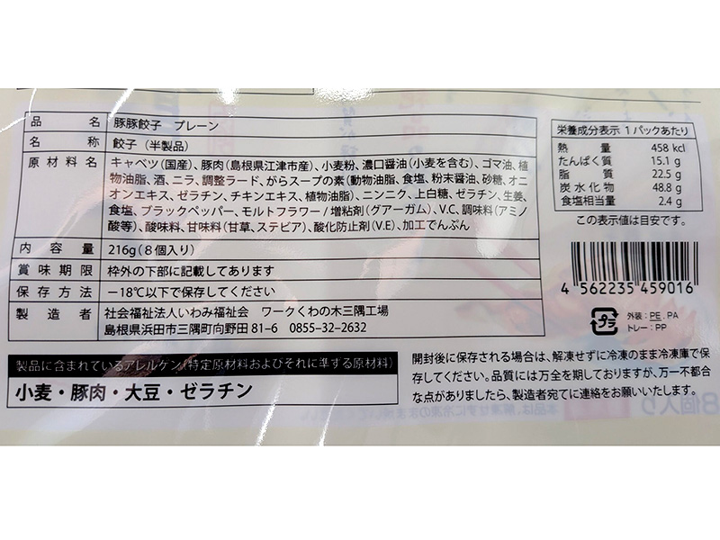 | 豚豚餃子 8個入り | 216g | 20袋 |