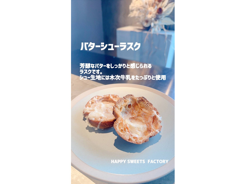 ホーム HAPPY SWEETS FACTORYの商品一覧 HAPPY SWEETS FACTORY 住所 690-0015 島根県松江市上乃木5丁目2-14 2F 電話番号 0852-78-2774 会社URL 企業PR・ こだわり HAPPY SWEETS FACTORY(ハッピースイーツファクトリー)は、2024年5月に松江市上乃木に誕生した、「焼きたて菓子とAWASEアワセ(生クリームサンド)」を主軸にしたスイーツショップです。シェフパティシエは出雲市斐川町の吉岡製菓を実家とし、全国に洋菓子修行に行き(メインは兵庫県三田市パティシエ エスコヤマ)様々な技術を習得し、それを松江市上乃木の地で表現していきます。 HAPPY SWEETS FACTORYの商品一覧 生クリームサンドAWASE(アワセ) バターカステラ カヌレドボルドー HSF シフォン バターシューラスク 1