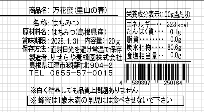 | 商品名(読み仮名) | まんかみつ(さとやまのはる)120g |