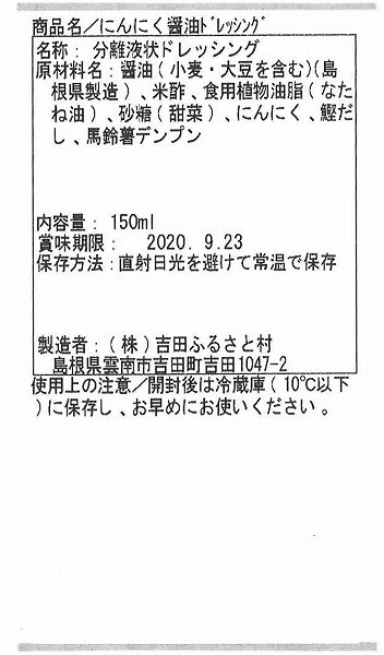 | にんにくしょうゆドレッシング | 150ml | 30本 |