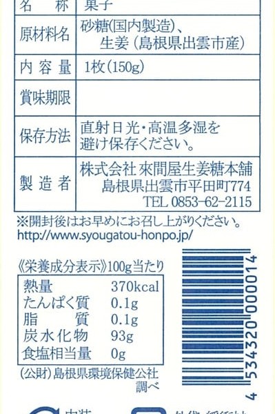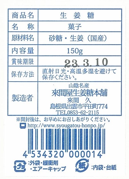 事業者名 株式会社 來間屋生姜糖本舗 会社情報/他の登録商品を見る