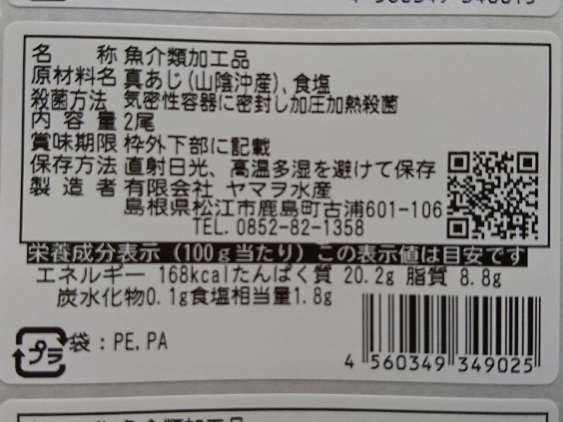 『高温高圧調理法』にて、頭から骨まで全部食べれますので、カルシウムを丸ごと摂れます。山陰沖で獲れた新鮮な魚を、添加物不使用・極力塩分控えめで加工し、魚本来のミネラル分の旨味を引き出しております。