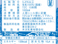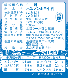 | 木次ノンホモ牛乳 | 1000ml | 14本 *ヤマトクール便の場合 |