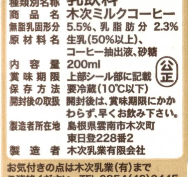 商品名(読み仮名) 木次ミルクコーヒー(きすきみるくこーひー)