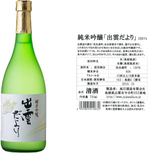 | 十旭日 純米吟醸 出雲だより 720ml | 720ml | 15 |