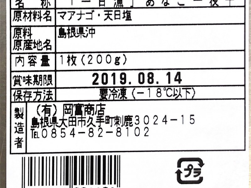 | 原料の産地 | マアナゴ(島根県産) |