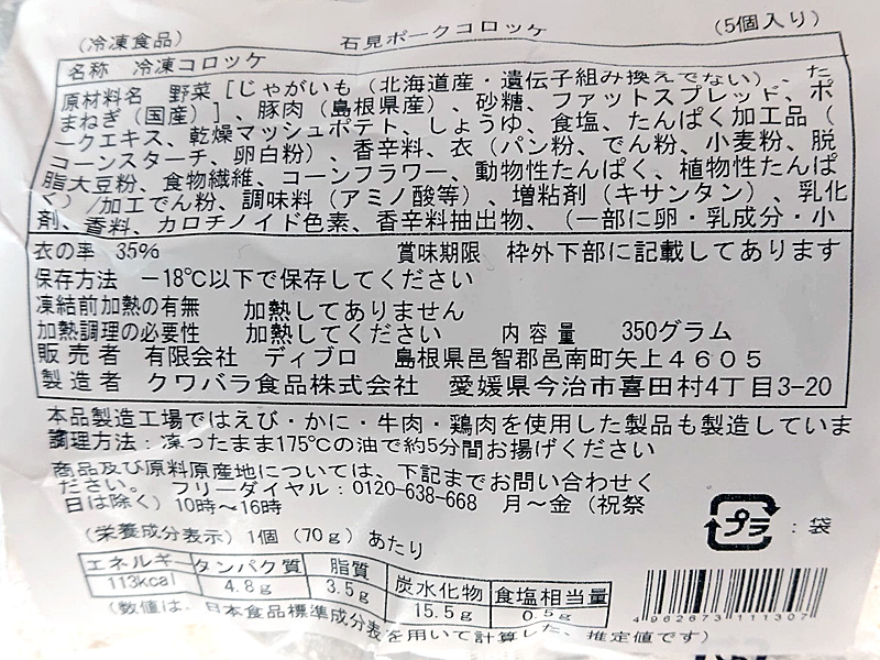 | 原料の産地 | じゃがいも(北海道産)豚肉(島根県) |