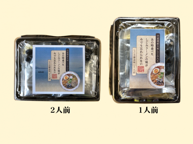 | 原材料 | [めん] 小麦粉(国内製造)、食塩、乾燥卵白/酒精、かん水、クチナシ色素、加工でん粉(打ち粉として)、(一部に小麦・卵を含む) [スープ] しじみだし汁(宍道湖産)、食塩、醤油、チキンエキス、チキンオイル、還元水飴、砂糖、発酵調味料、煮干しエキス、さばエキス、昆布エキス、かつおエキス、アサリエキス、ガラスープ、中華スープ、酵母エキス、酵母パウダー/調味料(アミノ酸等)、酒精、増粘剤(加工澱粉)、(一部に小麦・乳成分・大豆・鶏肉・豚肉・牛肉・ゼラチン・ごま・さばを含む) [レトルトしじみ] ヤマトしじみ(宍道湖産) |