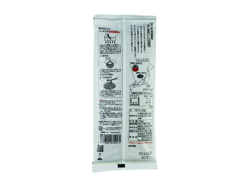| 原料の産地 | そば:日本、小麦粉:日本、食塩:オーストラリア |