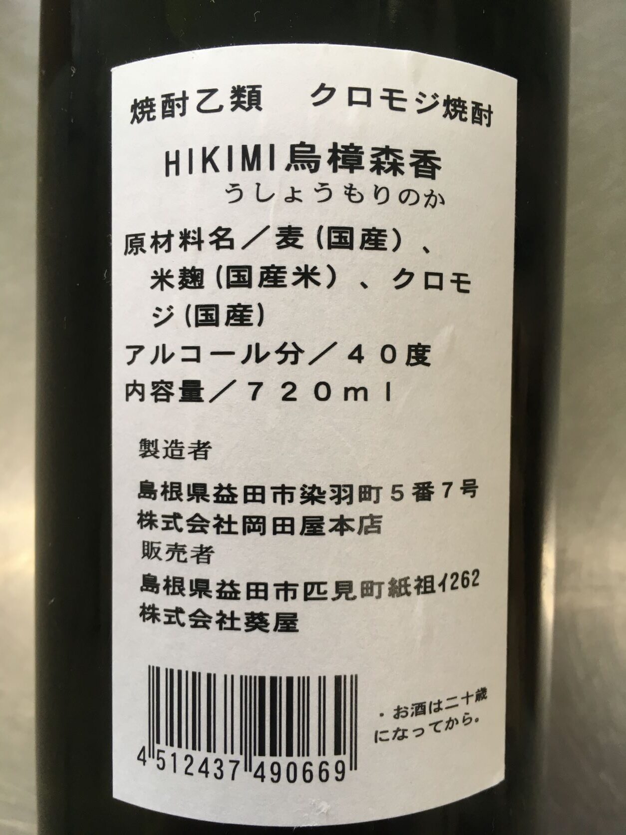 | HIKIMI烏樟森香(うしょうもりのか)40度 | 720ml | 12本 |