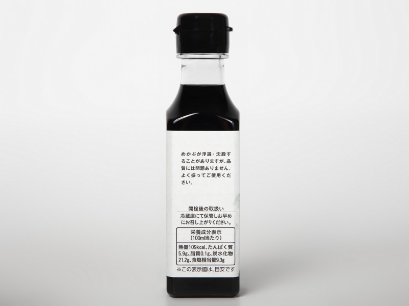 | 原材料 | しょうゆ(小麦、大豆を含む、国内製造)、米発酵調味料、めかぶ、砂糖 / 酒精 |