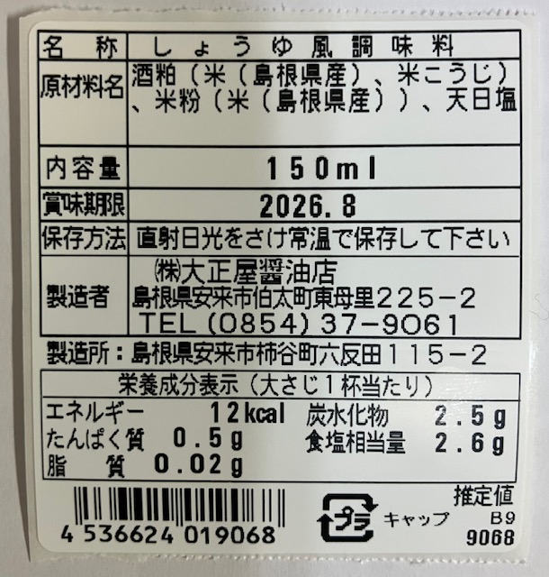 | 原料の産地 | 酒粕(島根県産)、米粉(島根県産)、食塩(オーストラリア産) |