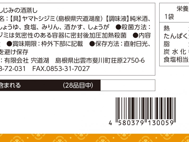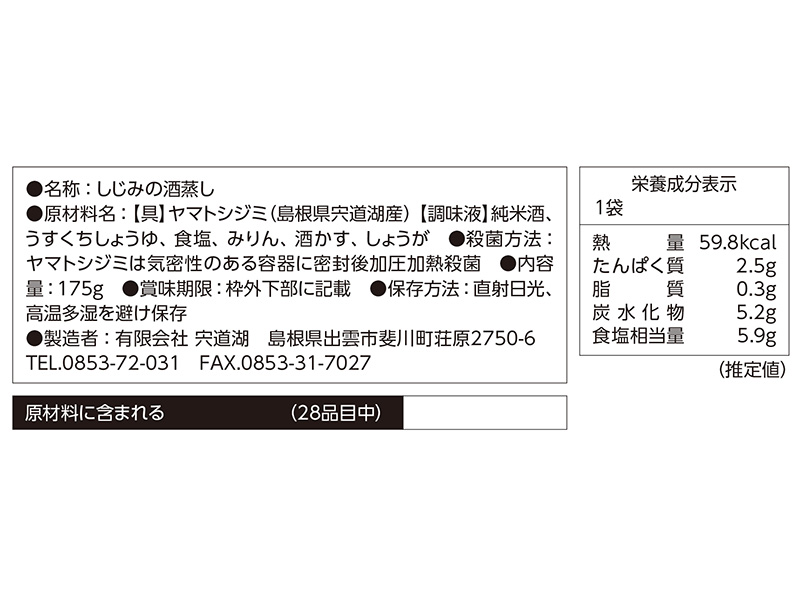 | 原料の産地 | 島根県宍道湖産しじみ |