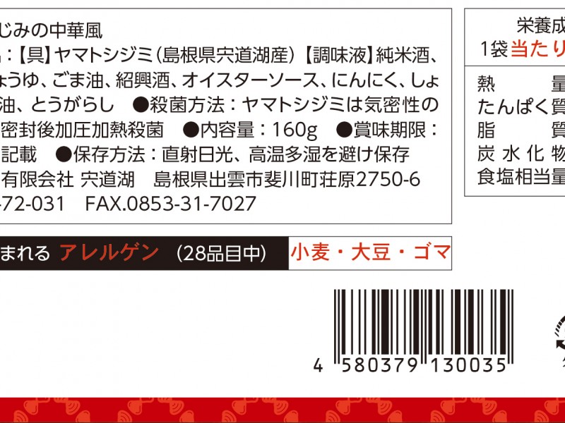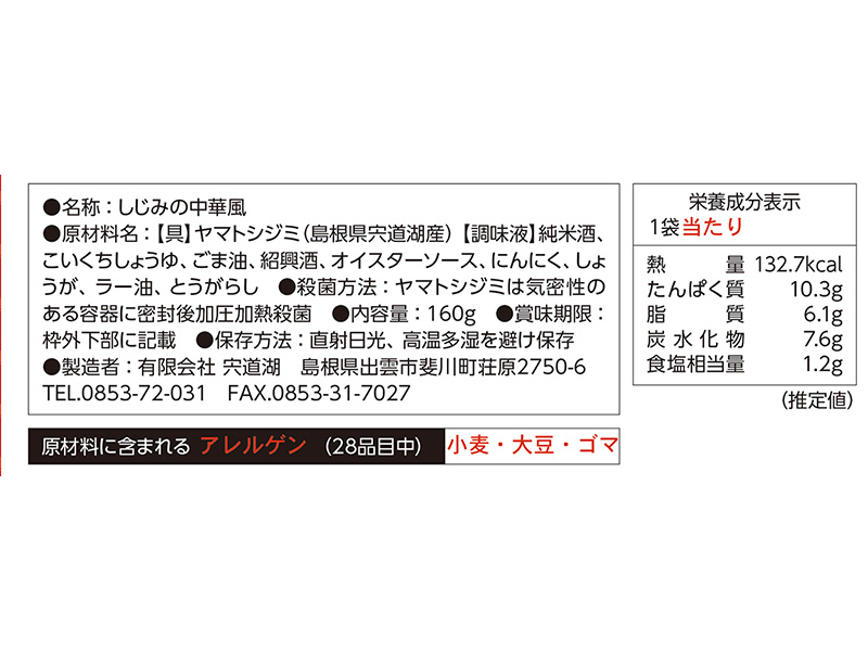 | 「しじみの達人」シリーズ 中華風 | 160g | 20個 |