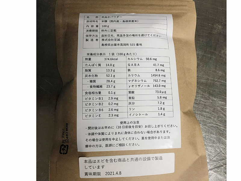 島根県産の米ぬかを独自の過熱処理で食べやすいパウダーにしました。食物繊維・GABAや米ぬか特有の注目成分、γ-オリザノールも豊富に含まれています。262項目の残留農薬検査・大腸菌検査もパスし、着色料・香料も無添加で安全・安心な一品です。