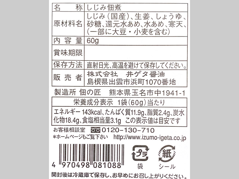 | 宍道湖大和しじみ佃煮 | 60g | 20個 |