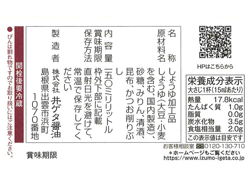 | 事業者名 | 株式会社井ゲタ醤油 会社情報/他の登録商品を見る |