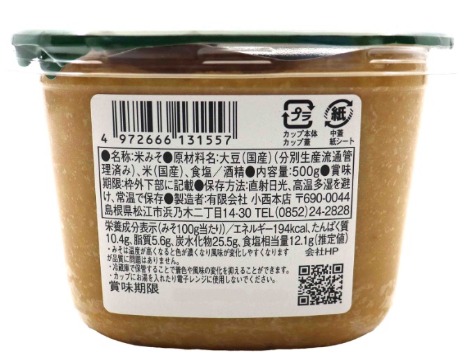 | 原料の産地 | 大豆(国産)、米(国産)、塩(国産)、酒精(国産) |