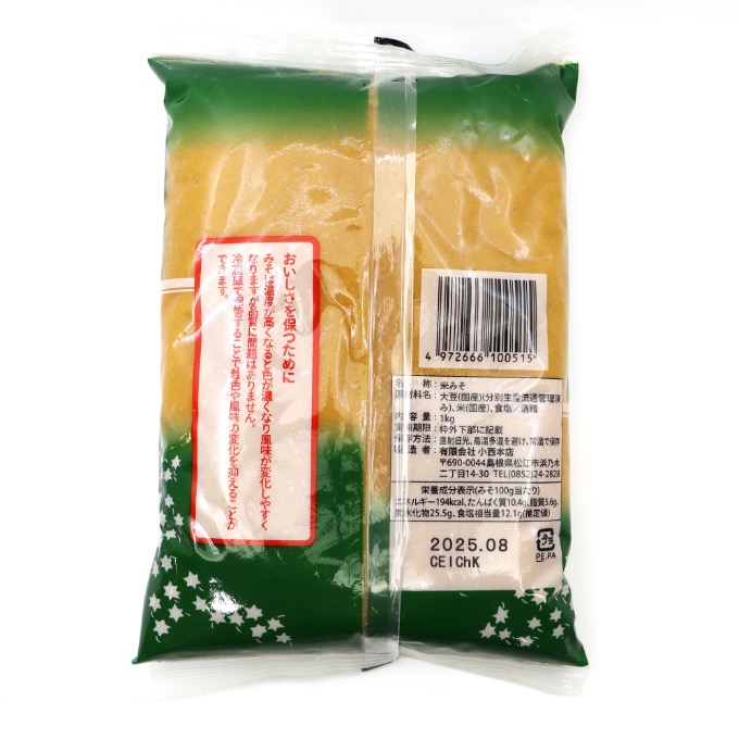 | 原料の産地 | 大豆(国産)、米(国産)、塩(国産)、酒精(国産) |