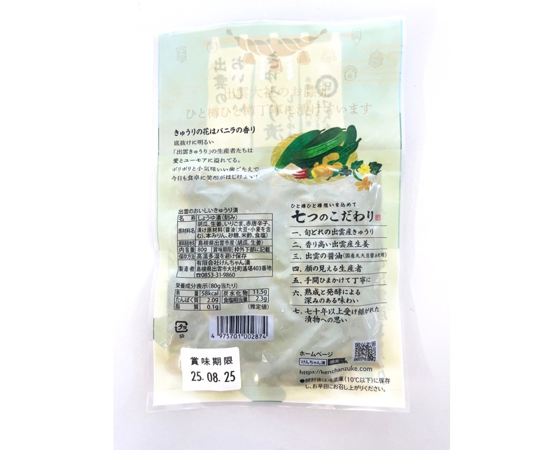 | 原料の産地 | 島根県出雲市産(胡瓜、生姜) |