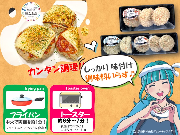 | おすすめメニュー | フライパンで両面に軽く焼き目が付く程度に調理してください。 オーブントースターで、5分から7分程度焼いてください。 |