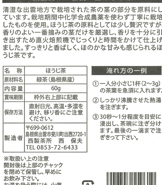 | 出雲国の一番摘み茎ほうじ茶 | 60g | 30個 |