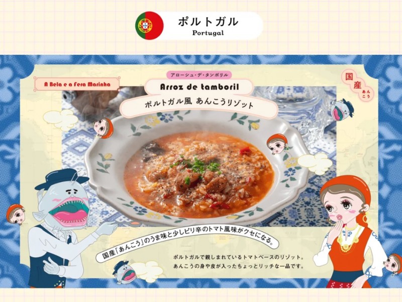 | おすすめメニュー | 少しピリ⾟のトマトベースとあんこうを組み合わせたちょっとリッチな味わいのポルトガル⾵スープです。そのままでも、ご飯と混ぜて煮込むことでポルトガル⾵あんこうリゾットでもお楽しみいただけます。 お好みでチーズや⿊胡椒をトッピングすると更に美味しくいただけます。 ※ご飯は同封しておりません。 |