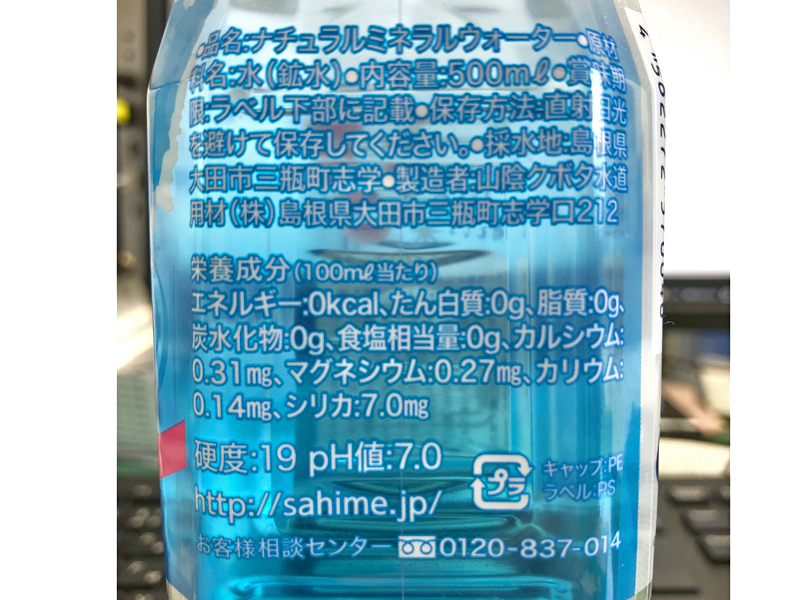 | 原料の産地 | 水(鉱水) 採水地:島根県大田市三瓶町志学 |