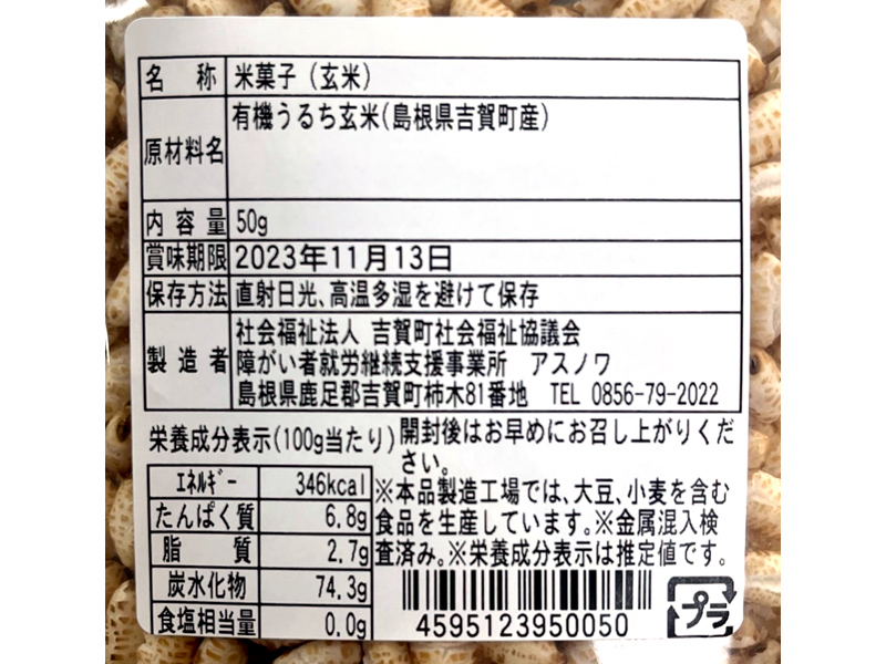 | 原料の産地 | 有機うるち玄米(吉賀町産) |