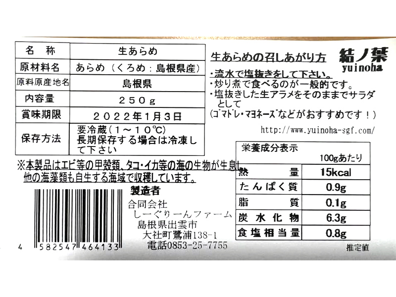 生の状態で流通することはごく稀であり、出雲市近辺でしか手に入らない希少品です。