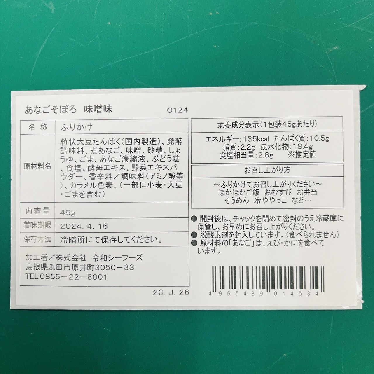 | 商品名(読み仮名) | あなごそぼろ 味噌味 |