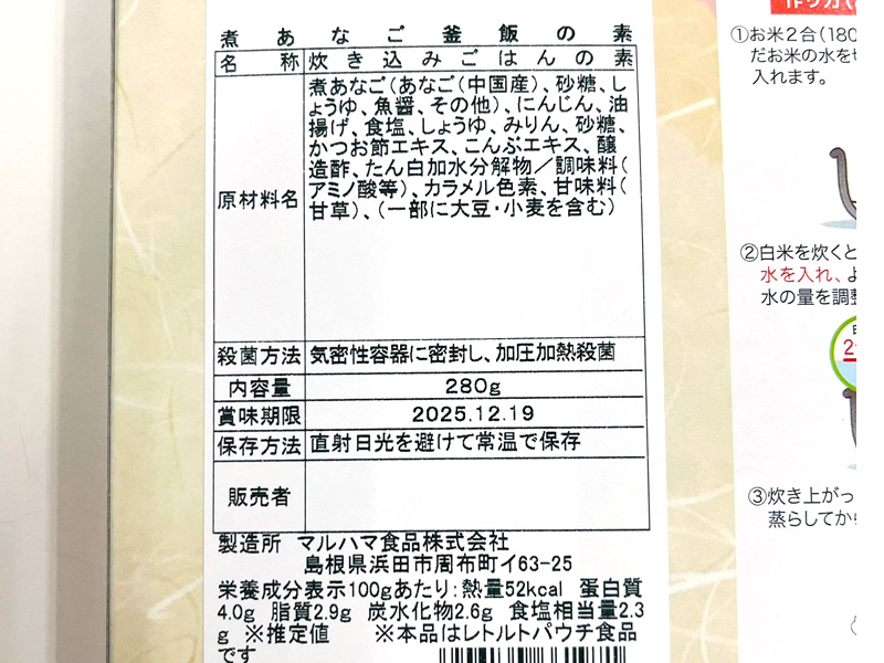 | 原料の産地 | 煮あなご(あなご(中国産) |