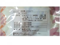 | 原材料 | さつまいもペースト、小麦粉、砂糖(てんさい糖)、ごま、マーガリン、食用植物油脂、味醂、食塩、トレハロース、乳化剤、香料、着色料(カロテン)(原材料の一部に大豆を含む) |