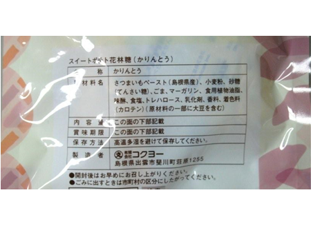 | 原料の産地 | さつまいもペースト(島根県産) |