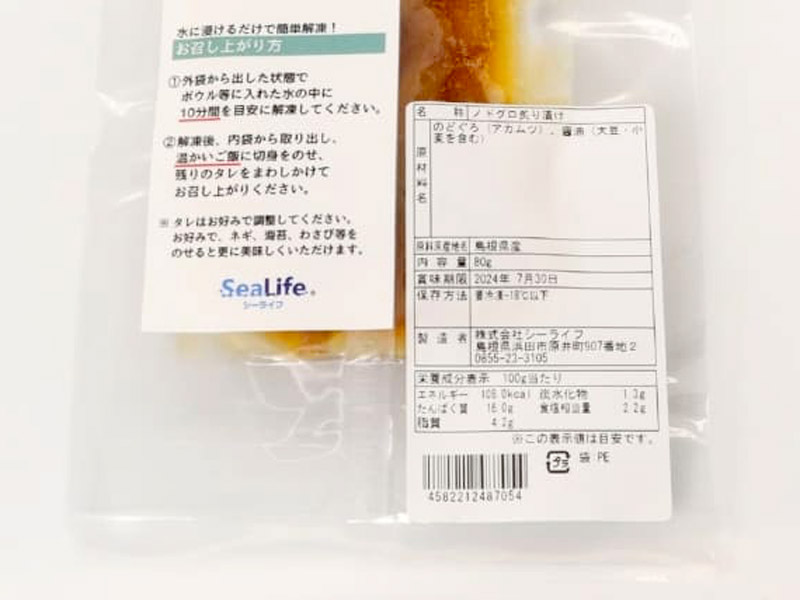 | 原材料 | のどぐろ(アカムツ)、醤油(小麦・大豆を含む) |