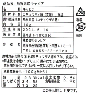 しまねけんさんふれっしゅきゃびあ「こちょうざめきゃびあ」 |