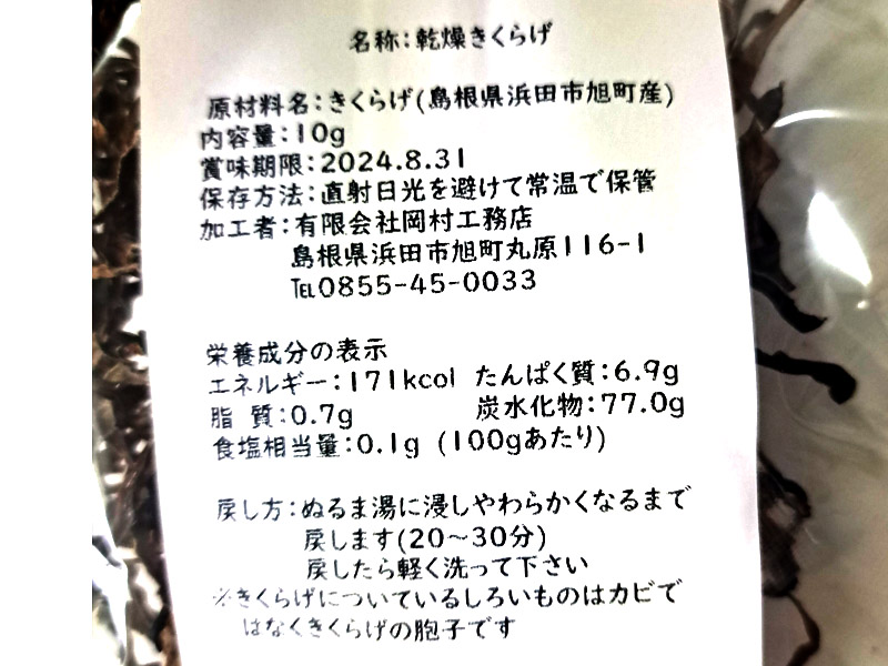 | ねこのみみ乾燥キクラゲ | 10g | 50袋 |