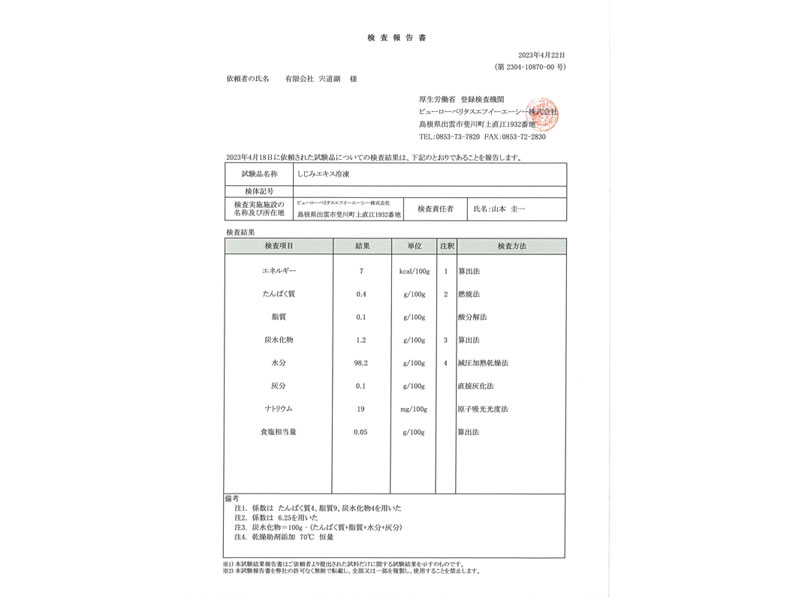 | 宍道湖産 大和しじみエキス冷凍 | 1ブロック4.5kg | 5個 |
