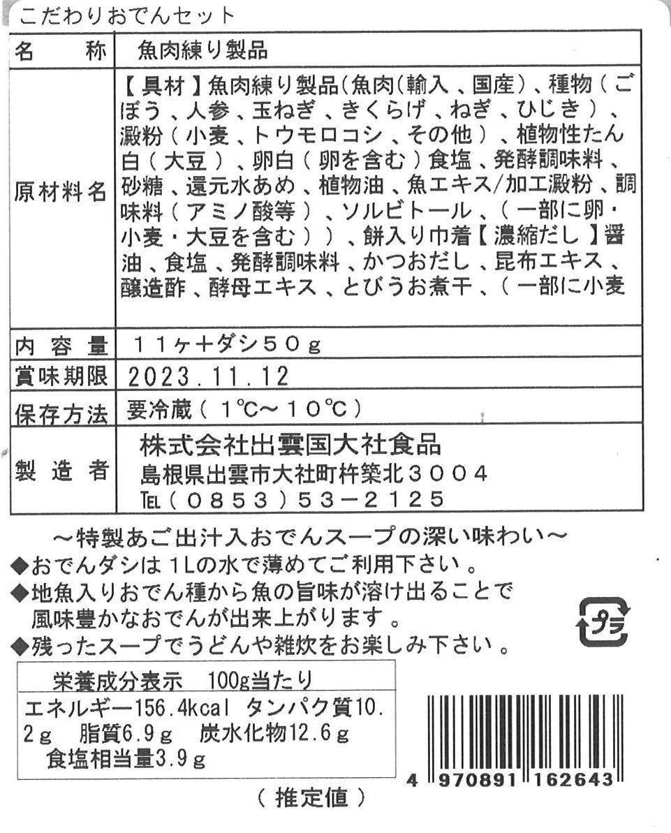 | こだわりおでんセット | 11ヶ+ダシ | 8 |