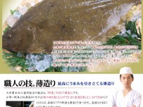 一日漁で獲れた日本海島根県産天然ひらめを贅沢に薄造りにしました。