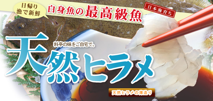 日本海産の天然ひらめを1つ1つ丁寧に、職人技で薄造りにしています。さっとしゃぶしゃぶして野菜、薬味と一緒にポン酢でお召し上がり下さい。その他にカルパッチョや生茶漬けや雑炊など、使い方は自由自在。