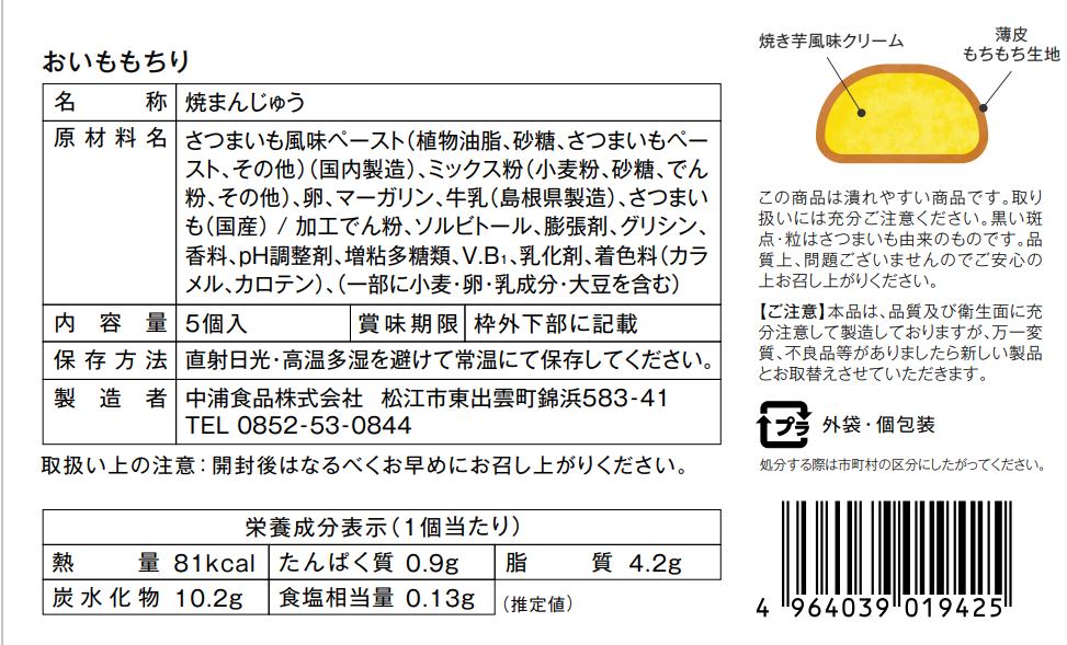 | 原料の産地 | 国産さつまいも、島根県産牛乳 |