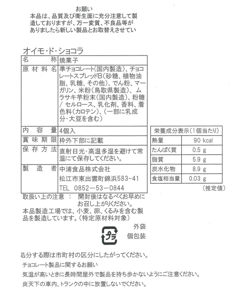 | オイモ・ド・ショコラ | 4個入 | 30 |