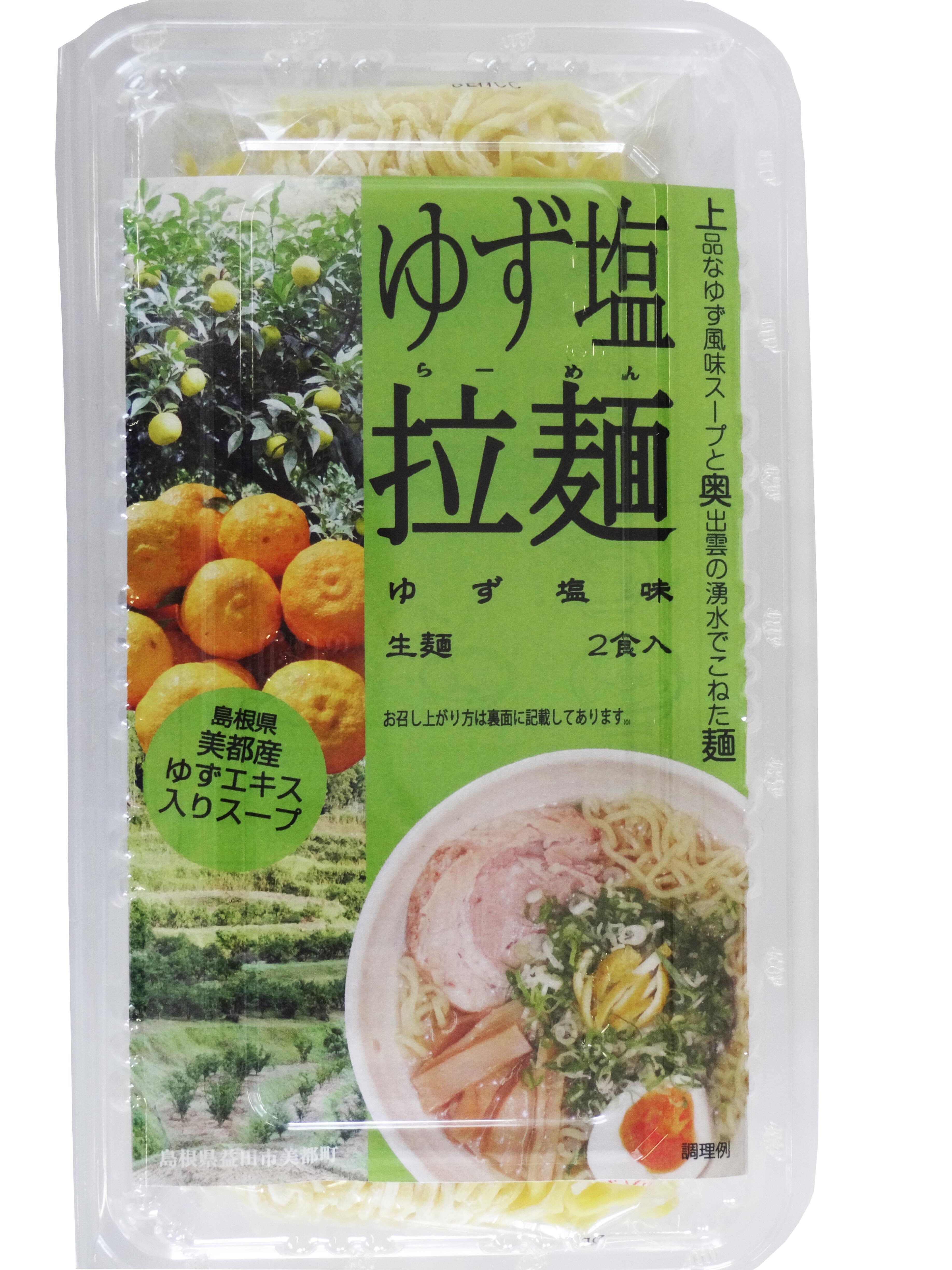 塩スープとゆず果汁のブレンドでさわやかな清涼感を醸し出しながらコクのあるスープに仕上げました。麺は奥出雲の天然水でこねたこだわりのちぢれ麺との相性が抜群です。(スープに島根県産のゆずを使用)