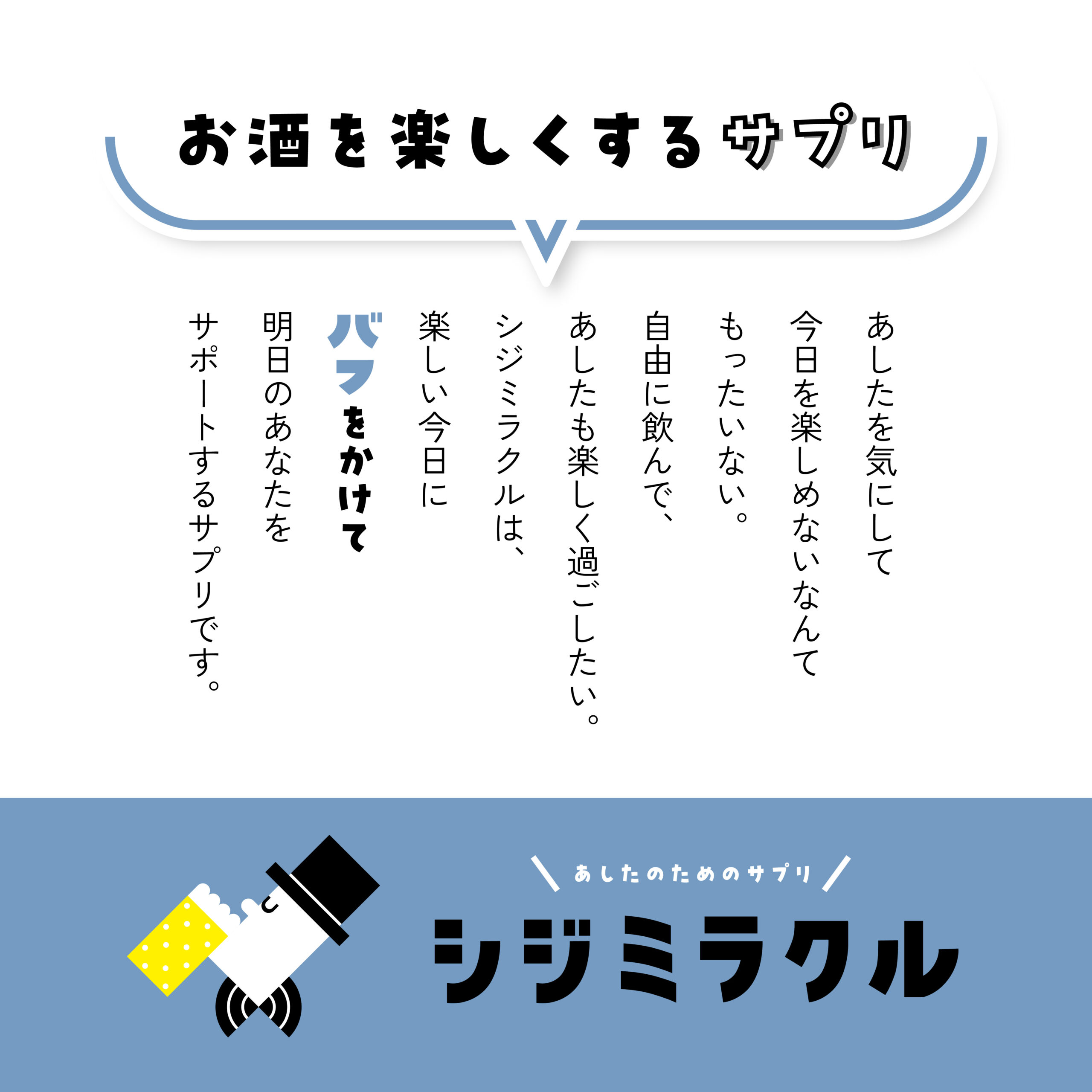 | 利用シーン・食シーン | ・とにかく楽しく飲みたい! ・大事な会食の前に! ・翌朝すっきりしたい! ・ついつい飲みすぎてしまった ・あした大切な仕事が控えている! ・日々の生活を大切にしたい方! |