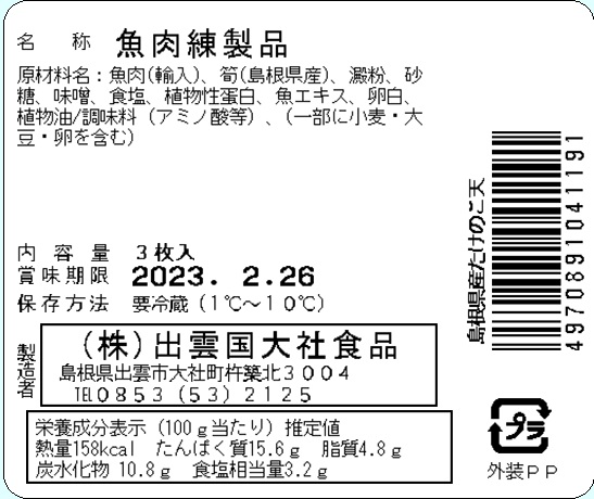 | 事業者名 | 株式会社出雲国大社食品 会社情報/他の登録商品を見る |