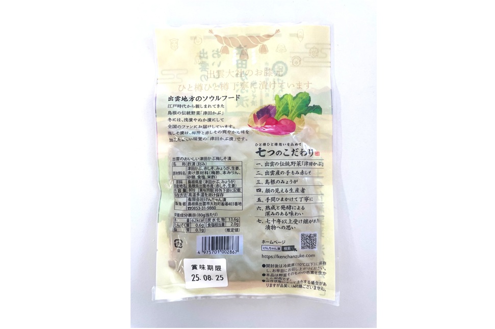 | 出雲のおいしい津田かぶ梅しそ漬 | 80g | 30(混載可) |