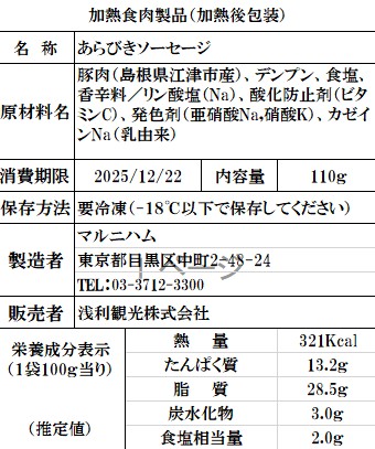 | まる姫ソーセージ | 1パック110g | 50個 |