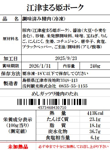 | めしガッツリ 韓国風味のまる姫ポーク | 240g | 30個 |