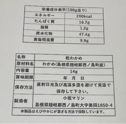 | 隠岐西ノ島町産 板わかめ | 14g | 10個から注文可能 |